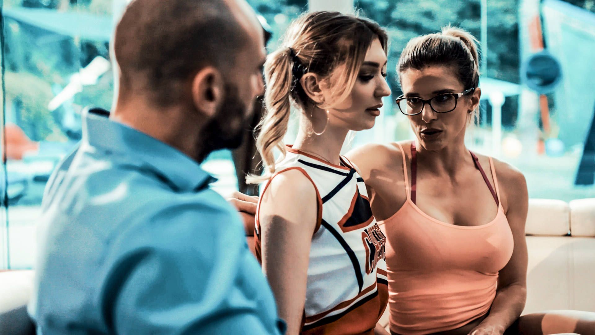 As they chat, Heather seems to get an idea: Kelly should put on Heather's old uniform for some fun and innocent photos. Kelly agrees but is shocked when they ask her to change in front of them. Despite her reluctance and growing disquiet, Kelly changes into the cheerleader outfit in front of Donald and Heather as they leer at her.